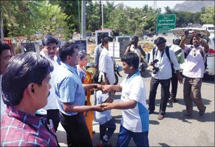 திருவண்ணாமலையில் 7 கிலோ மீட்டர் பின்நோக்கி நடந்து சென்ற பள்ளி மாணவர்