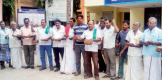 பயிர் காப்பீடு தொகை வழங்கக்கோரி விவசாயிகள் நூதன ஆர்ப்பாட்டம்